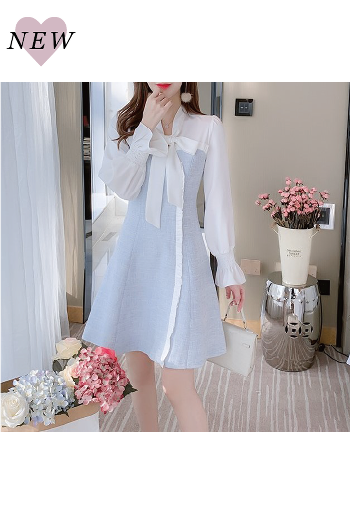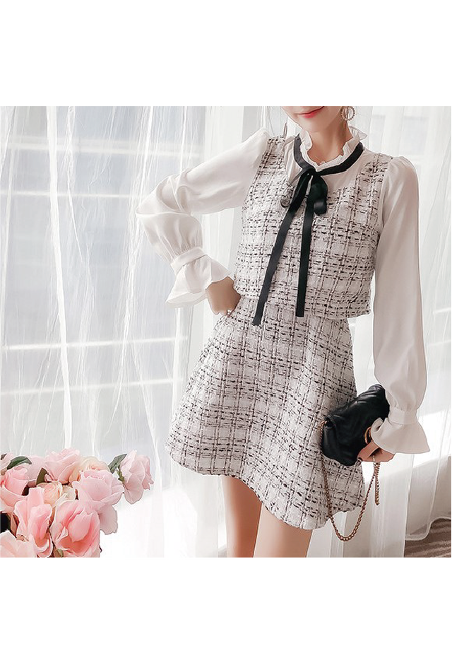 2色 フェイクツーピースツイードワンピース Chere Moi