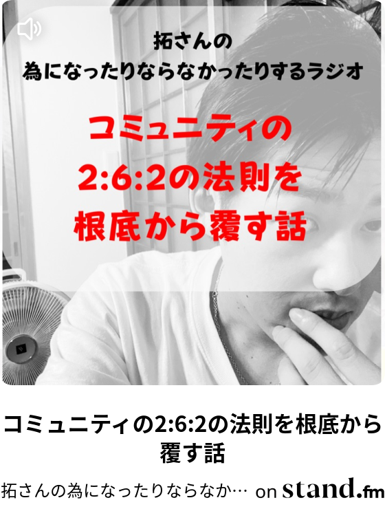 コミュニティの2 6 2の法則を根底から覆す話 拓さんの為になったりならなかったりするチャンネル Stand Fm