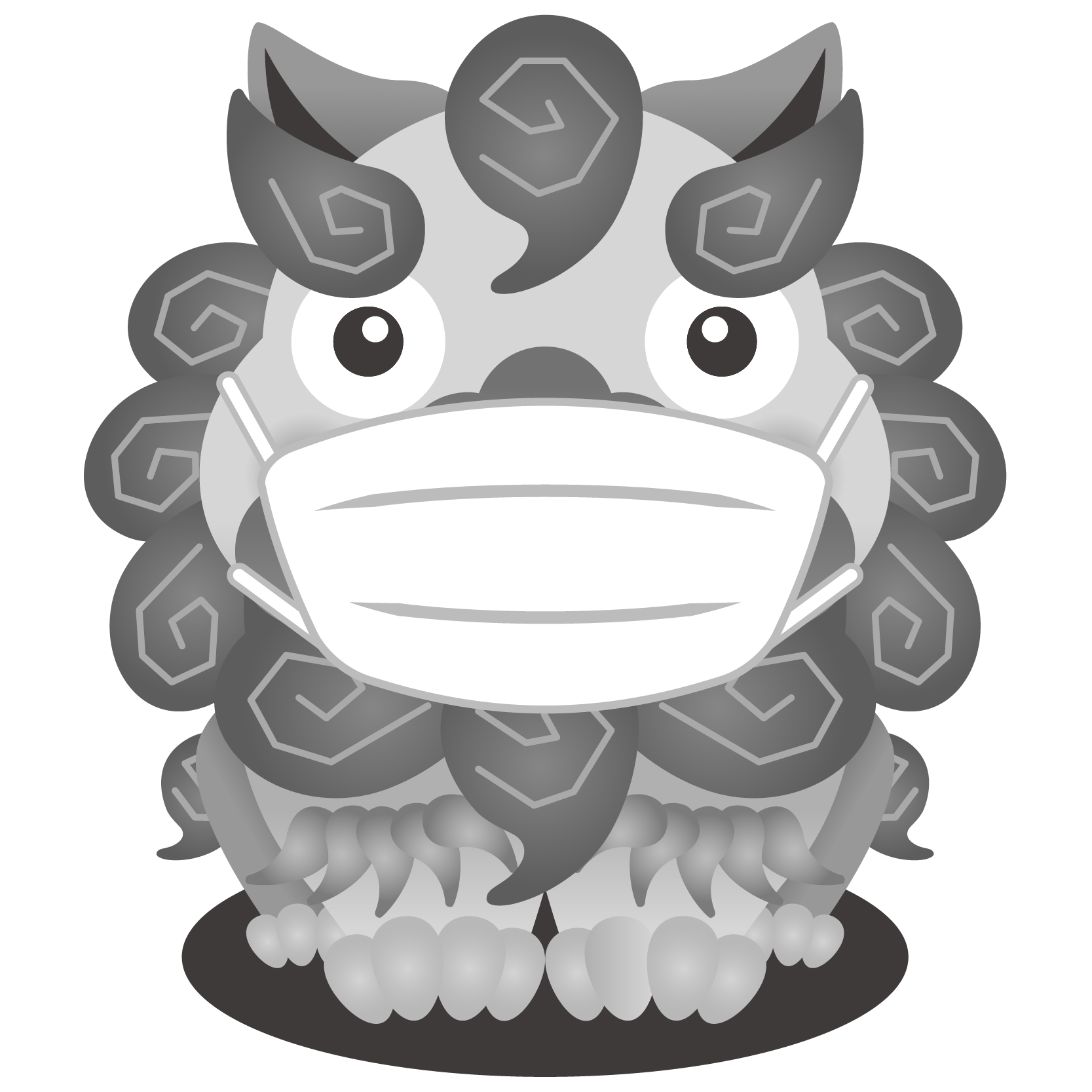 商用フリー 無料イラスト マスクをしたグレー 無彩色 のシーサー Shisa018 商用ok フリー素材集 ナイスなイラスト
