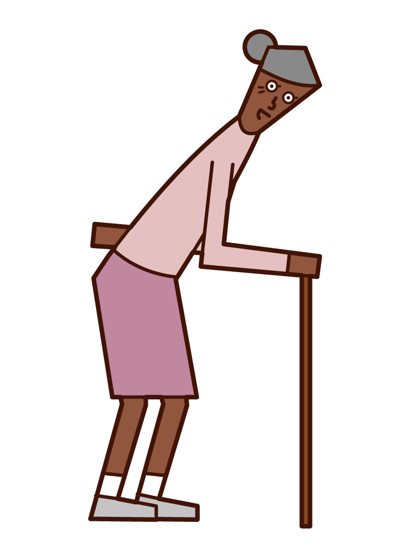 杖をついて歩く老人 女性 のイラスト フリーイラスト素材 Kukukeke ククケケ