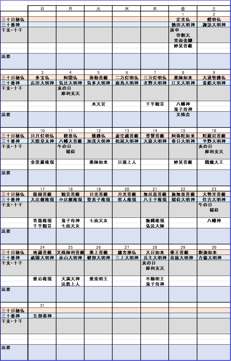 くびれさん 7月の神仏の縁日カレンダーです 縁日 三十日秘仏 三十番神 文殊会 T Co Lyivynca55 Twitter