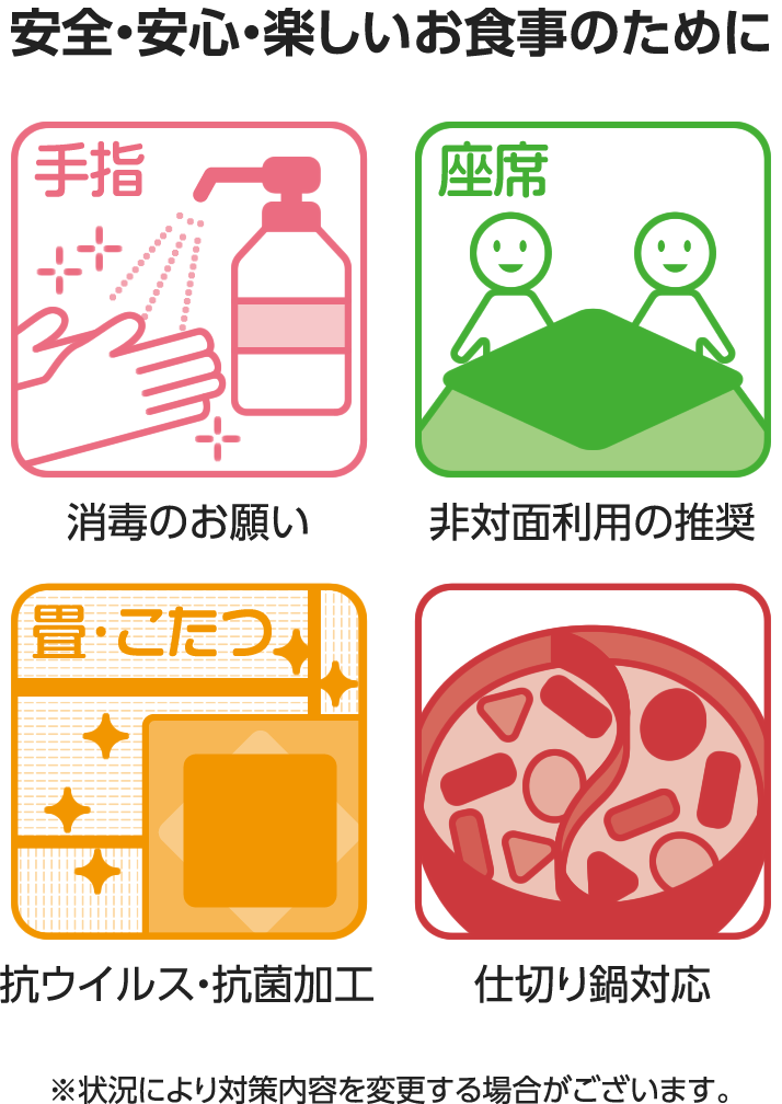 ただいまい草屋さんこたつ屋さん直営店では 下関から産地直送!ふぐ七福神セットが10名様に当たるプレゼントキャンペーンを開催中です 期間:年12月18日(金)~21年1月18日(月) 期間中、イケヒコオンラインショップで お買い物すると抽選で10名様に、. あり :お一人様にも大人気★元気なかぶと屋の雰囲気をお楽しみください! ソファー なし :お座敷座布団 テラス席 あり :大人気のこたつ席(茶屋席)がございます!冬場はほぼ満席の為ご予約・お問合せ必須! 貸切. こたつ屋 田端本店 ジャンル 居酒屋 電話番号 住所 東京都北区田端新町2264 Google Mapで開く 配達 なし.