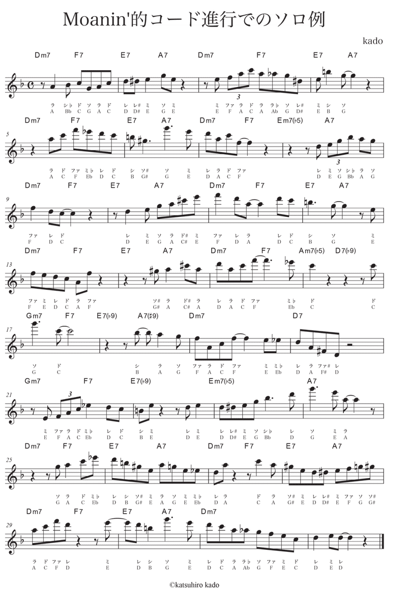 アルトサックス Moanin 的コード進行でのソロ例 加度 克紘 Note