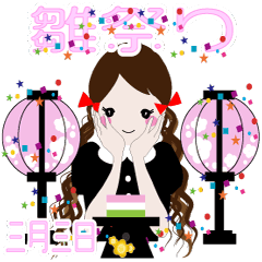 ロングヘア赤いリボンの女の子 雛祭り1 Lineスタンプ Nae78yama