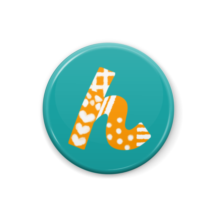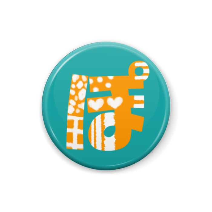 柄文字缶バッジ ひ オレンジ 緑 Lion Rabbit Booth