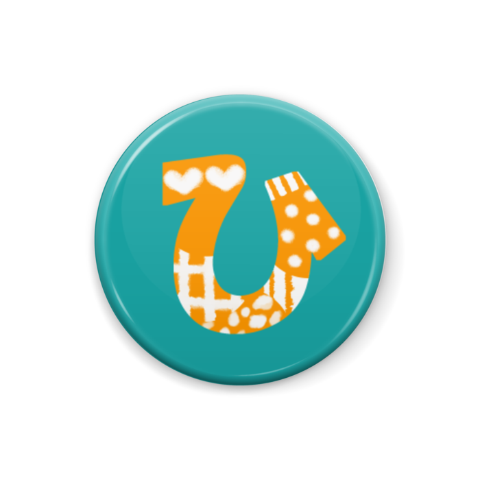 柄文字缶バッジ ん オレンジ 緑 Lion Rabbit Booth