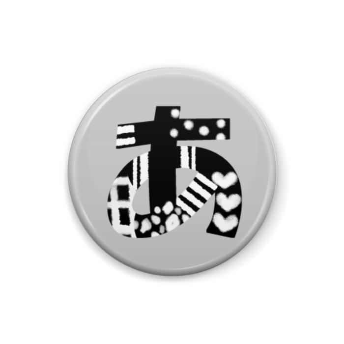 柄文字缶バッジ あ 黒 グレー Lion Rabbit Booth