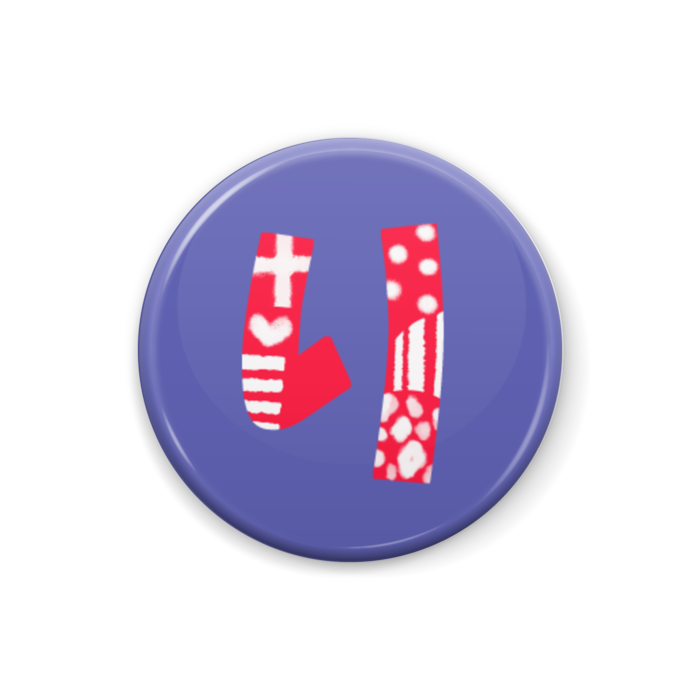 柄文字缶バッジ ぱ 赤 青紫 Lion Rabbit Booth